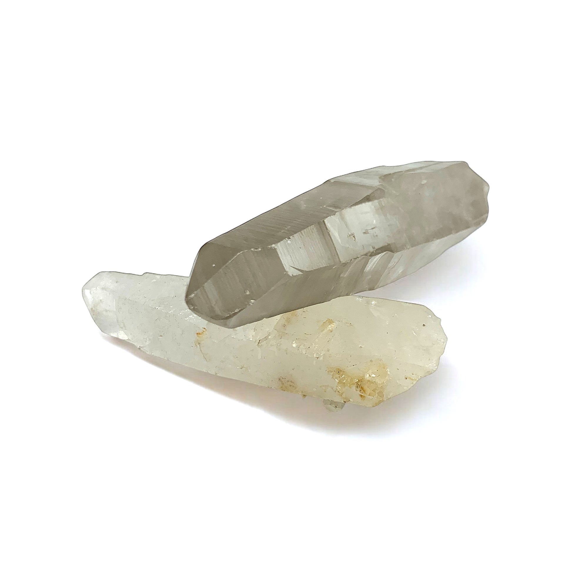 Clear Quartz with electrostatically bonded silver and platinum gives a synergistic blend of the properties of clear quartz and a unique spectrum of subtle energies all its own. A form of quartz with striations that assists in accessing Lemurian consciousness.