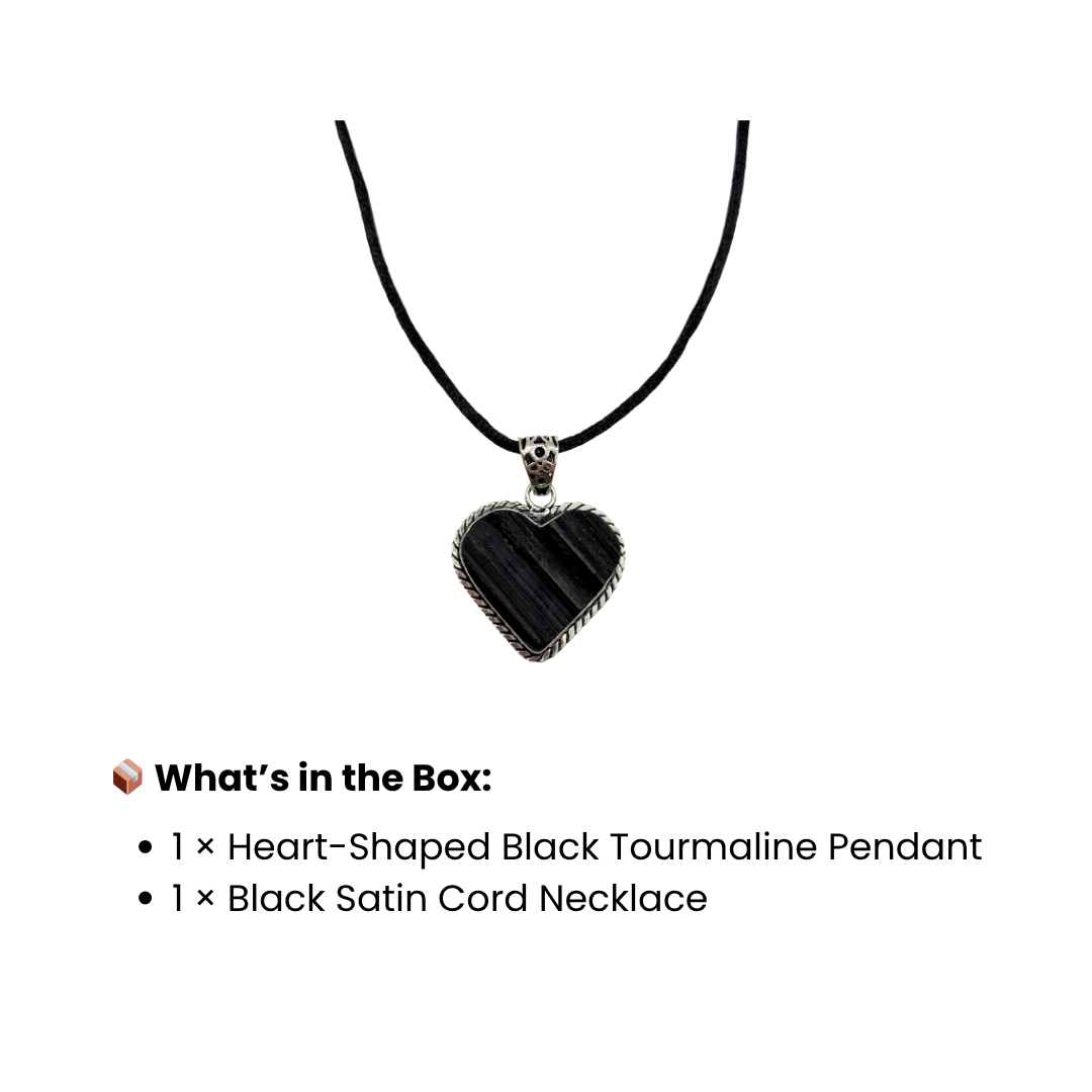 Experience the protective energy of Black Tourmaline with this heart-shaped pendant. Handcrafted with care and featuring natural striations, this grounding crystal necklace is designed to shield your energy and support emotional stability throughout your day.