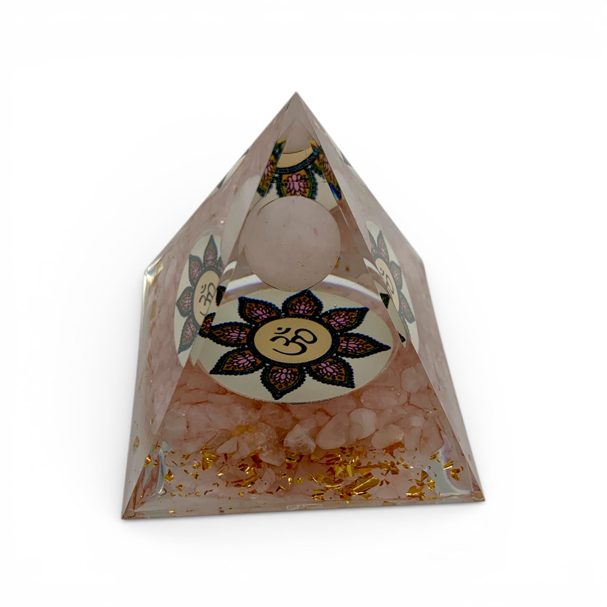 Rose Quartz, Om Symbol, Rose Quartz Sphere & Gold Flakes